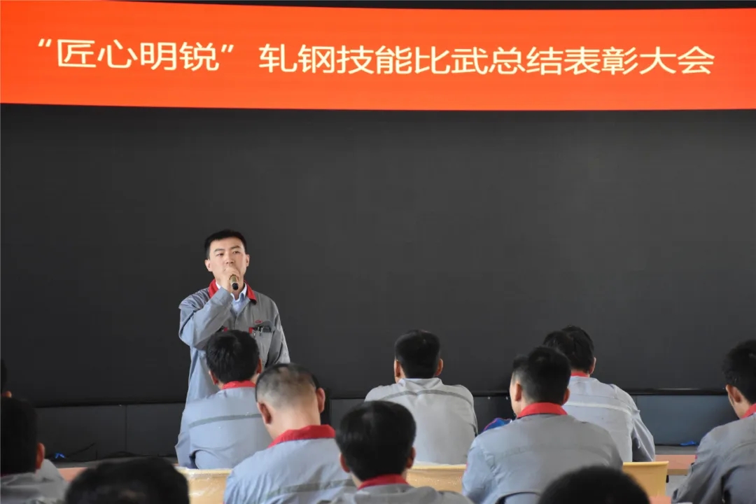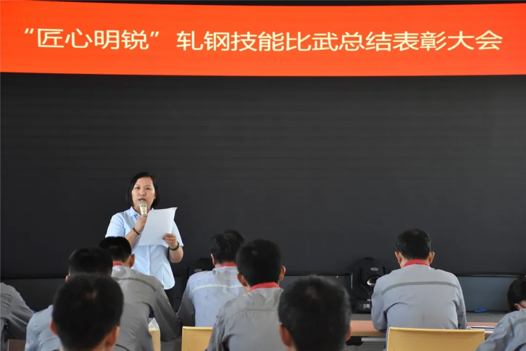 7.20日上午,在公司一樓多媒體會(huì)議廳舉辦“匠心明銳”軋鋼技能比武總結(jié)表彰活動(dòng),參賽的十五個(gè)作業(yè)班組及評(píng)委團(tuán)全體成員出席了表彰儀式。