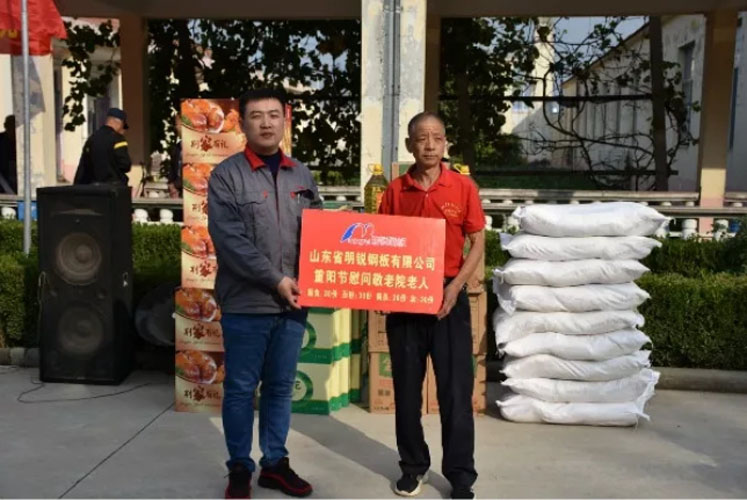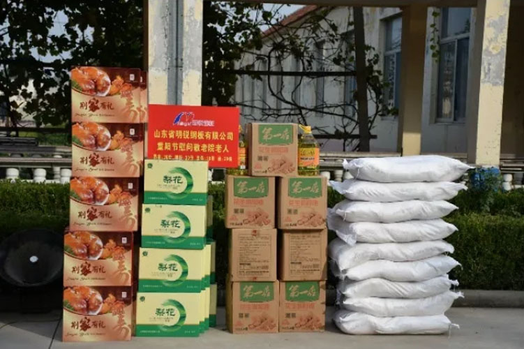 10月7日,在重陽節(jié)來臨之際,山東省明銳鋼板有限公司組織了送溫暖活動,為店子鎮(zhèn)敬老院送上了熟食、面粉、食用油和面條等慰問品,讓他們感受到來自公司的濃濃暖意。